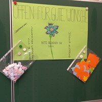 Wir, die Klasse G5a, haben uns engagiert und Segensblumen gebastelt. Unsere Religionslehrerin hängte sie dann mit einem Plakat in der Vesperkirche für uns auf. Die Besucher können sich eine Segensblume mitnehmen, in der ein guter Wunsch steht. Durch diese guten Wünsche bekommen die Menschen ein warmes Gefühl im Bauch. Wir finden das gut, weil sich manche dann nicht mehr einsam fühlen. (Text von Leonie und Lia, 5a)