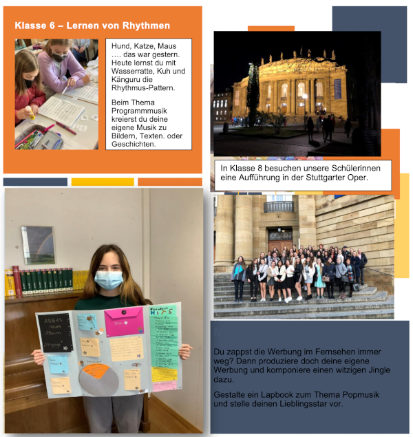 Das Fach Musik bietet für die Klassen in St. Klara verschiedene Fahrten nach Stuttgart in die Oper oder ins Ballett an. Die Schülerinnen haben zu Beginn die Möglichkeit, sich in Stuttgart aufzuhalten, spazieren oder auch shoppen zu gehen. Um 19.00 Uhr beginnen die Aufführungen. Diese eindrucksvollen Darbietungen faszinieren und erfreuen die Teilnehmerinnen und bieten ihnen die Möglichkeit, in die Welt der Oper und des Balletts einzutauchen.