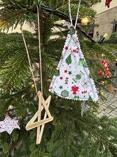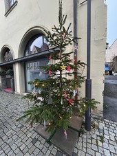 Die Schülerinnen der Klasse 7b nahmen gemeinsam mit ihrer Lehrerin Susanne Schmid-Bok an der Aktion Mein Weihnachtsbaum für Rottenburg teil. Mit viel Kreativität gestalteten sie im Fach AES Baumschmuck und schmückten einen Weihnachtsbaum, der nun in der Rottenburger Innenstadt für festliche Stimmung sorgt.