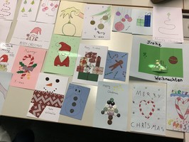 Mit sehr kreativen Weihnachtskarten unterstützte die Klasse 8d im Rahmen des Religionsunterrichts eine Spendenaktion für das Kinderzentrum Ümüt-Nadjeschda in Kirgistan.