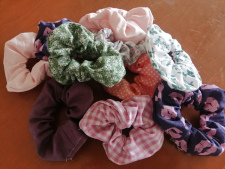 Die AES Gruppe 8d hat sich mit dem Projekt "Kreativ und nachhaltig handeln - Upcyling an St. Klara" zur Aufgabe gemacht, aus Stoffresten Scrunchies zu nähen, die am Schulfest verkauft werden sollen.
