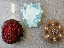 Leckere Torten gab es bei der AES Gruppe 9d mit Frau Wiktor. Mit ganz viel Mühe und Liebe sind wunderschöne Torten entstanden, die im Anschluss mit allen Klassenkameradinnen und den Klassen- und FachlehrerInnen gegessen wurden.