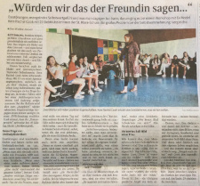 Siebtklässlerinnen unserer Schule hatten Besuch von Kera Rachel Cook in einem Workshop mit dem Thema "Selbstwahrnehmung und Essstörungen". Frau Cook hat einige Zeit als Model gearbeitet und war Teilnehmerin bei Germanys-Next-Topmodel. Aus eigener Erfahrung diskutierte sie mit den Schülerinnen.