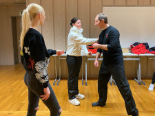 Montagmorgen 8.00 Uhr an St. Klara. 21 Schüler*innen der J1a, sowie 3 Trainer‘*innen der Kung Fu Academy machen sich mit dem Thema Selbstverteidigung vertraut.