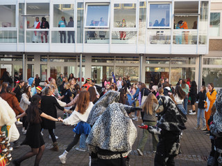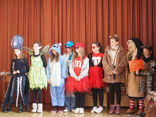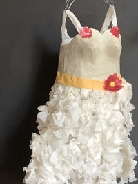 Im vergangenen Schuljahr haben die Schülerinnen der Klassen 9d damit beschäftigt, aus ungewöhnlichen Materialien Kleidung herzustellen. Stoffe oder Leder, die gewöhnlich für Kleidung verwendet werden, legen sich geschmeidig um den Körper, während Papier weniger zur Herstellung von Kleidung geeignet erscheint. Mit großem Ideenreichtum waren die Schülerinnen am Werk.