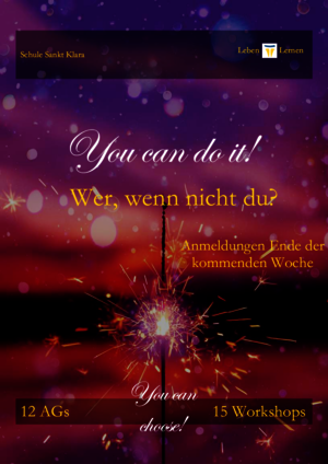 Schaut gleich rein und überlegt, an welcher AG oder an welchem Workshop ihr teilnehmt.