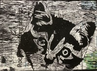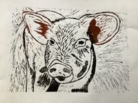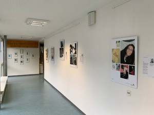 Die Schülerinnen der Klasse 10e haben im vergangenen Schuljahr die Technik des Linoldrucks kennengelernt. Bei den Linolschnitten gingen die Schülerinnen von einem Schwarz-Weißfoto aus, das sie mithilfe der dem Druck eigenen Gestaltungsmittel, Linie- Fläche- Punkt, umgestalten mussten. Bei der Drucktechnik handelt es sich um Handabdrucke auf unterschiedlichem Papier mit verschiedenen Farben.