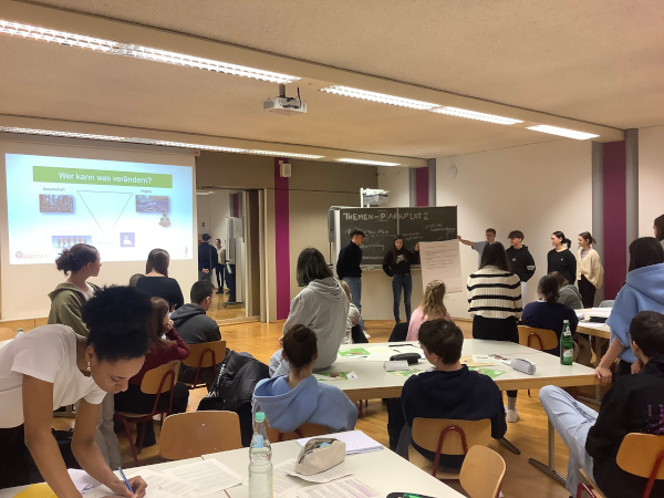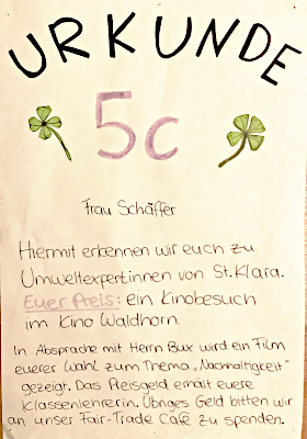 Durch ein Brainstorming wurden zunächst Ideen gesammelt, wie ein Leben gestaltet werden könnte, das einen schonenden Umgang mit Ressourcen ins Zentrum rückt. In den drei Bereichen "Wir als Klasse", "Unsere Schule" und "Unsere Stadt" verwirklichten die Schülerinnen anschließend Verschiedenes: Sie stellten ein Mitmach-Projekt mit attraktiven, von Rottenburger Firmen gestifteten Preisen für alle Klassen der Schule auf die Beine und gestalteten Plakate für das ganze Schulhaus. Zwei Rottenburger Firmen kamen für Vorträge an die Schule und die Schülerinnen führten Interviews mit Gesamtschulleiter Pflaum-Borsi und Oberbürgermeister Neher. "Die Schülerinnen waren zwischendurch selbst überrascht, wie viel sie mit ihrer Kompetenz und Strahlkraft erreichen können", berichtet ihre Physiklehrerin Dr. Susanne Kreim.