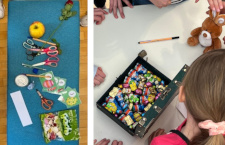 Die Schülerinnen der Klasse 6e der Realschule präsentieren ihre Werke aus dem Unterricht Bildende Kunst. Das Thema war die Entwicklung einer eigenen Comicfigur aus „Fundstücken“ aller Art als Rassel. Dabei entstanden phantasievolle und farbenfrohe Gestalten.