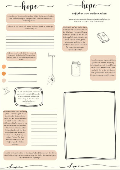 Wir präsentieren Ihnen hier ein Beipiel für einen solchen Impuls, den Frau Jakubowski zum Thema "Hoffnung" für die Morgenkreise zur Verfügung gestellt hat. Mit diesem Impuls soll das Augenmerk auf das Positive des Lebens gelenkt werden.