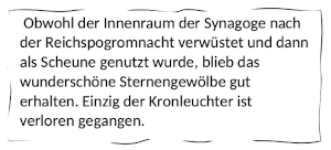Hubert Dettling vom Förderverein der Gedenkstätte stellte sich dann als ausgesprochen kompetente Stimme für die nach der Reichspogromnacht im November 1938 gewaltsam aufgelöste jüdische Gemeinde zur Verfügung. Dabei schilderte er viele anschauliche Details der Familien, wie bspw. die der Eltern des Dr. Fredy Kahn, dessen Mutter die letzte in Baisingen lebende Jüdin nach ihrer Rückkehr aus verschiedenen KZ-Lagern war.