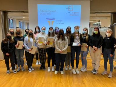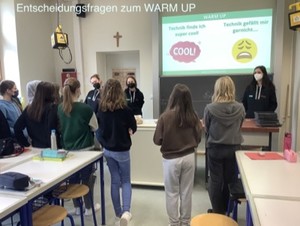 Bereits im letzten Schuljahr 20/21 realisierten 24 Schülerinnen der Klasse 10b des Progymnasiums St. Klara unter Leitung von Herrn Schütt ein Podcast-Projekt, das nach einer längeren Phase des Homeschoolings im Deutschunterricht durchgeführt wurde. Dabei konnten Schülerinnen eigene Themen nennen, die vom Gedanken des gegenseitigen Respekts (Demokratieerziehung) ausgehen sollten. Entstanden sind Podcasts zur WM in Katar, zum Einfluss sozialer Medien auf jugendliche Lebenswelten oder zum Thema der sexualisierten Gewalt.