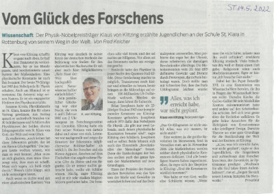 Zur Zeit ist sie Praktikantin beim Schwäbischen Tagblatt in Tübingen. In diesem Rahmen hat sie ihren ersten Artikel veröffentlicht.