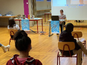 Mit iPads galt es die gewonnenen Informationen zu verarbeiten, Texte zu schreiben und zu redigieren, Gedanken zur Regie festzuhalten und damit über den Aspekt der Dramaturgie nachzudenken – insgesamt eine sehr anspruchsvolle Aufgabe, welche die Medienkompetenz der Schülerinnen auf verschiedene Weise forderte – und förderte.