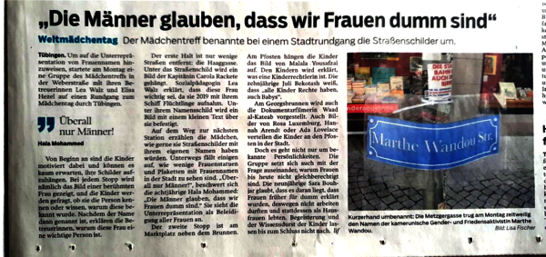 Lisa Fischer hat ihren ersten Artikel im Tübinger Tagblatt veröffentlicht.
