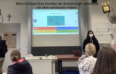 Herzlichen Dank an diese drei Frauen und das Wertvolle, was sie mit uns geteilt haben; ebenso an Herrn Schick, der mit großem Einsatz die Veranstaltung in der alten Turnhalle unter 3G Regeln für die Schülerinnen möglich gemacht hat und an die Schulleitung, die die Durchführung auch in Corona Zeiten mit entsprechenden Hygieneauflagen unterstützt hat.