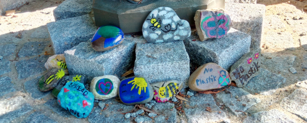 Diese zeigen ihre Verbundenheit mit den Tieren und Pflanzen, und mahnen zum achtsamen und verantwortungsvollen Umgang mit Gottes Schöpfung. Die Schülerinnen legten ihre bemalten Steine vor die Franziskus-Statue im oberen Schulgarten. Jede/r, die/der vorbeikommt, darf sich von der Botschaft der Steine angesprochen fühlen.