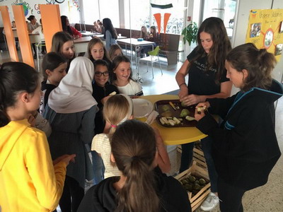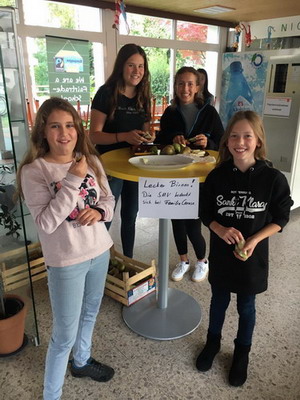 Im September gab es leckere Birnen in der Pausenhalle. Die Birnen wurden von Familie Caruso gespendet und von der SMV verteilt. Viele Mädchen freuten sich über die Birnen und die SMV hofft, dass noch öfter Obst oder Gemüse in der Pause angeboten werden kann. Obstspenden können jederzeit an der Pforte abgegeben werden. Vielen DANK nochmals an Familie Caruso!