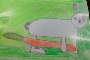 Ich habe lange überlegt, welches Tier ich nehmen soll. Dann habe ich mich für die Griechische Landschildkröte entschieden. Um eine schöne Zeichnung von meiner Schildkröte zeichnen zu können, habe ich ein Foto aus meinem Schildkrötenbuch zur Vorlage genommen und abgezeichnet.